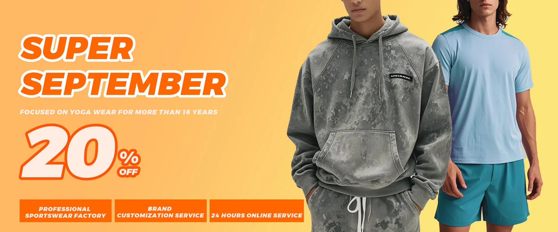 Prodotti principali: Abbigliamento da Yoga, abbigliamento da palestra, pantaloncini da ginnastica, felpe con cappuccio da uomo, tuta